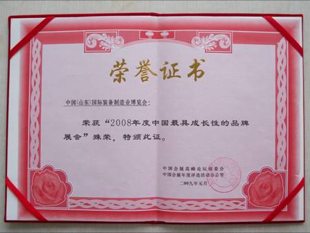 制博會(huì)榮獲“2008年度中國最具成長性的展會(huì)”