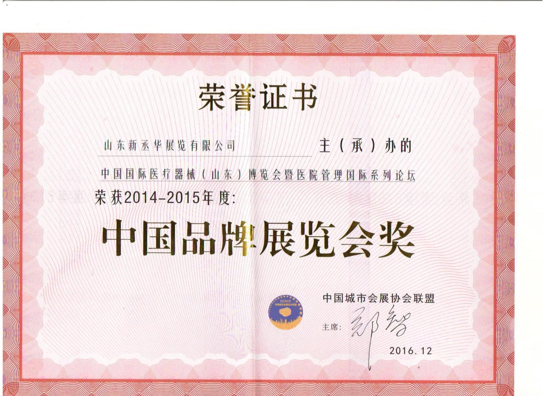 醫(yī)博會(huì)—中國品牌展覽會(huì)獎(jiǎng)