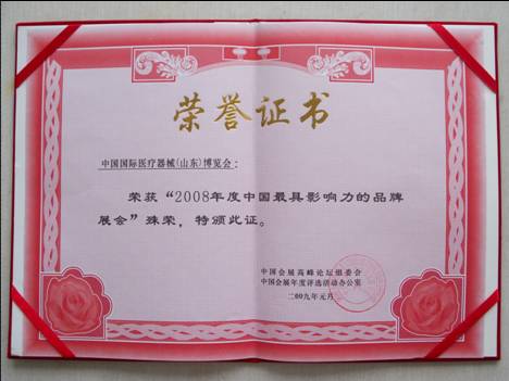 醫(yī)博會(huì)榮獲“2008年度中國最具影響力的品牌展會(huì)”