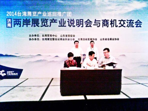 6月11日上午,為推動(dòng)山東與臺(tái)灣展覽產(chǎn)業(yè)的共贏發(fā)展,由山東省貿(mào)促會(huì)和臺(tái)灣貿(mào)易中心共同主辦的“兩岸展覽產(chǎn)業(yè)說明會(huì)與商機(jī)交流會(huì)”在濟(jì)南舉行。魯臺(tái)雙方共計(jì)100多名展覽業(yè)相關(guān)商協(xié)會(huì)、企業(yè)、場(chǎng)館及院校代表參會(huì)。山東新丞華展覽有限公司在會(huì)上與臺(tái)灣安益國(guó)際展覽集團(tuán)簽訂了合作意向協(xié)議。