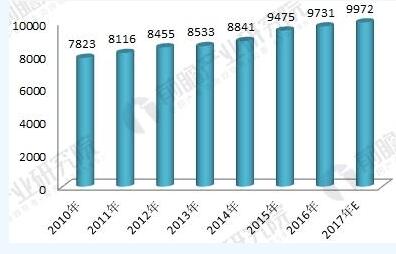 圖表2:2010-2017年中國(guó)餐廚垃圾產(chǎn)生量規(guī)模趨勢(shì)圖(單位:萬噸,%)