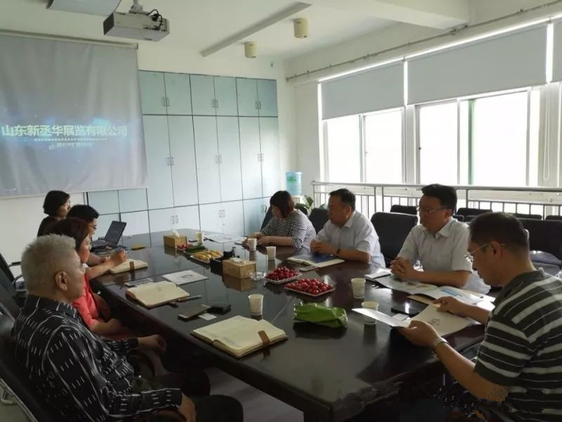 2018年5月30日下午,山東女子學(xué)院旅游學(xué)院黨總支書記呂建國、旅游學(xué)院院長張明、藝術(shù)設(shè)計學(xué)院黨總支書記于學(xué)江、會展經(jīng)濟(jì)與管理教研室主任柳雯、專業(yè)教師李甜甜一行前往我院會展經(jīng)濟(jì)與管理專業(yè)學(xué)生實習(xí)基地—山東新丞華展覽有限公司,與公司王愛民董事長、韓照景副總經(jīng)理、祿鳳文董事長助理進(jìn)行了交流。
