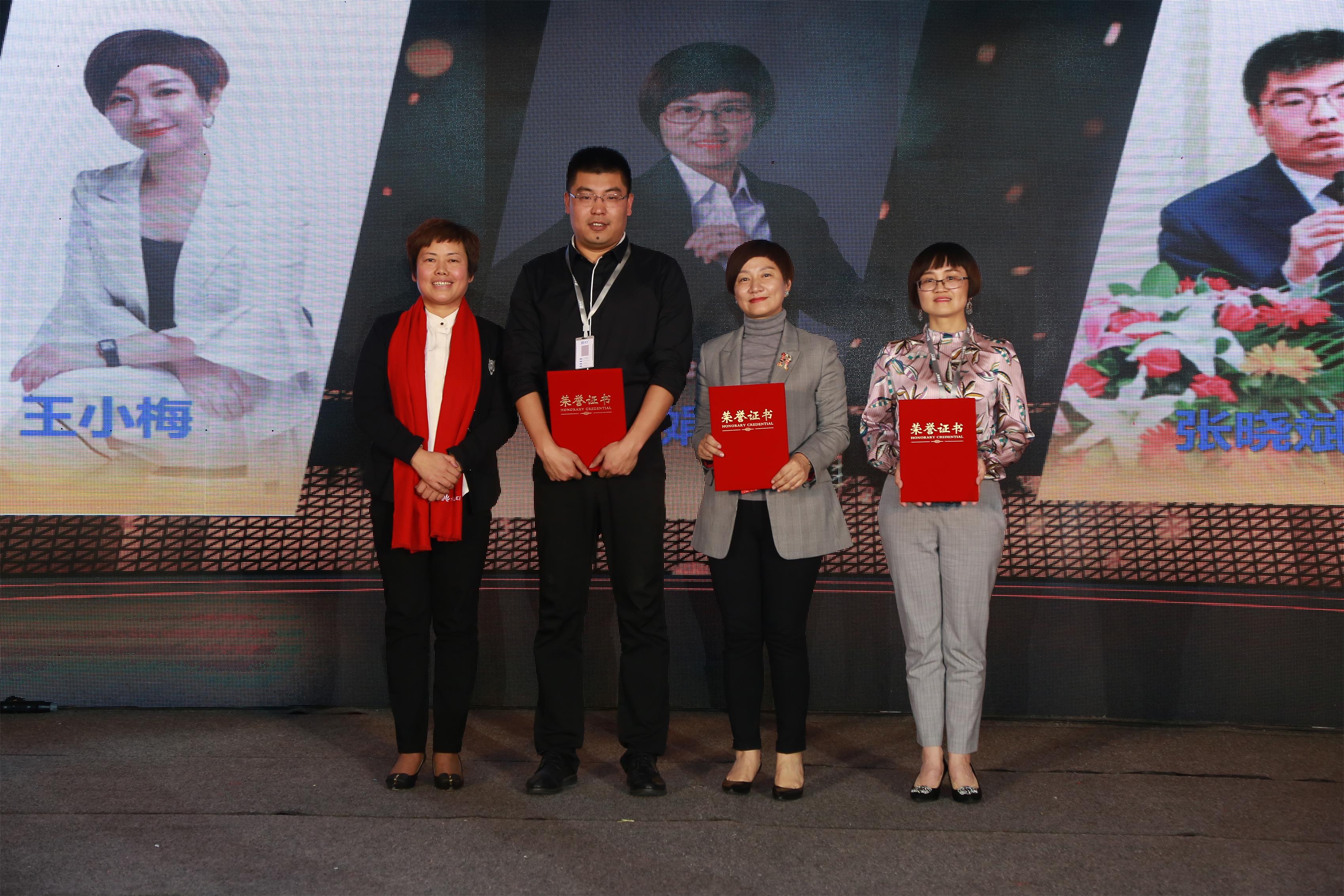 公司董事長王愛民為優(yōu)秀管理獎獲得者:王小梅 于秀娟 張曉斌