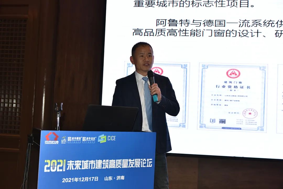 阿魯特節(jié)能門窗副總馬廣明圍繞“以卓越的門窗性能,成就美好家園綠色建筑之美”這一內(nèi)容進(jìn)行精彩演講。