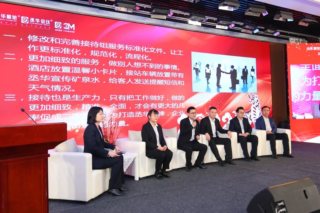 此主題沙龍是由行政總監(jiān)侯兆芳主持。參與話題討論的是來(lái)自展覽現(xiàn)場(chǎng)運(yùn)營(yíng)部龍飛、會(huì)議現(xiàn)場(chǎng)運(yùn)營(yíng)部高銳、接待組王明、行政部李莉、藝術(shù)總監(jiān)宋欣陸?,F(xiàn)場(chǎng)圍繞“如何將細(xì)致、溫馨、藝術(shù)的服務(wù)觸達(dá)到每位客戶的心中”這一內(nèi)容,探討在我們的展覽會(huì)以及論壇活動(dòng)現(xiàn)場(chǎng),如何讓每一位來(lái)賓都能感受到我們丞華展覽、丞華會(huì)議卓越的服務(wù)。