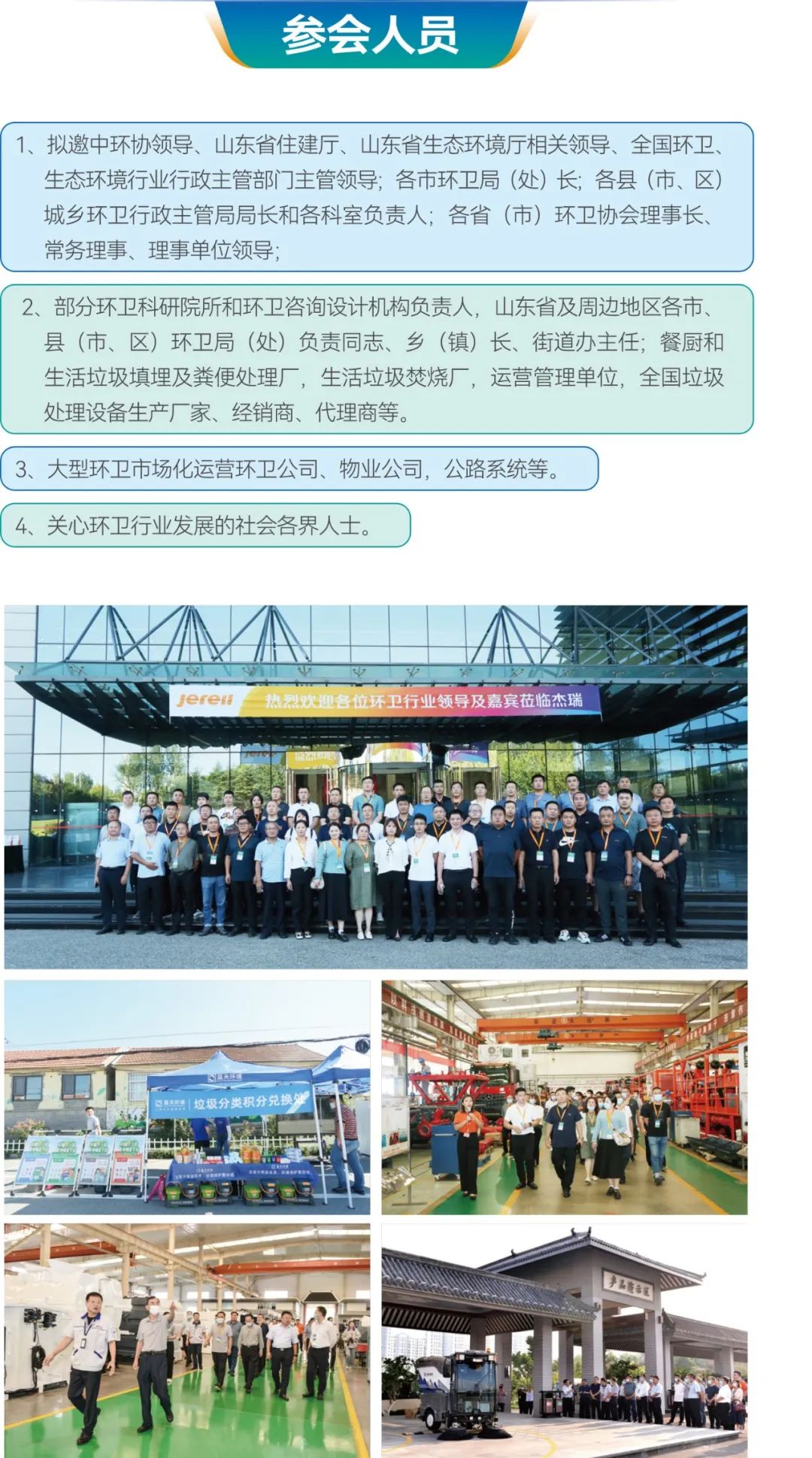 1、擬邀中環(huán)協(xié)、山東省住建廳、山東省生態(tài)環(huán)境廳相關(guān)領(lǐng)導(dǎo)、全國環(huán)衛(wèi)、生態(tài)環(huán)境行業(yè)行政主管部門主管領(lǐng)導(dǎo);各市環(huán)衛(wèi)局(處)長;各縣(市、區(qū))城鄉(xiāng)環(huán)衛(wèi)行政主管局局長和各科室負(fù)責(zé)人;各?。ㄊ校┉h(huán)衛(wèi)協(xié)會理事長、常務(wù)理事、理事單位領(lǐng)導(dǎo);