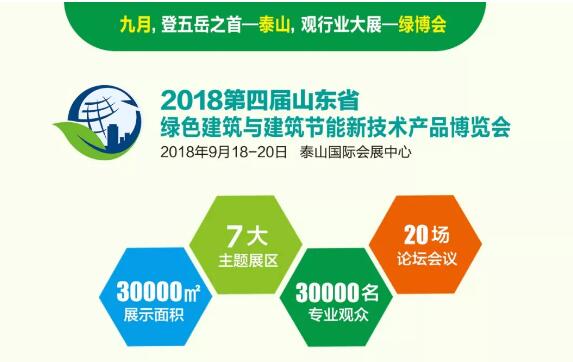 為提升山東綠色建筑與建筑節(jié)能發(fā)展水平,推動(dòng)住建領(lǐng)域新舊動(dòng)能轉(zhuǎn)換及綠色發(fā)展,9月18-20日,以“綠色智建 裝配未來——發(fā)展綠色智能建造 助力新舊動(dòng)能轉(zhuǎn)換”為主題的“2018第四屆山東省綠色建筑與建筑節(jié)能新技術(shù)產(chǎn)品博覽會(huì)(簡(jiǎn)稱:綠博會(huì))”將在泰安市泰山國(guó)際會(huì)展中心隆重舉辦。