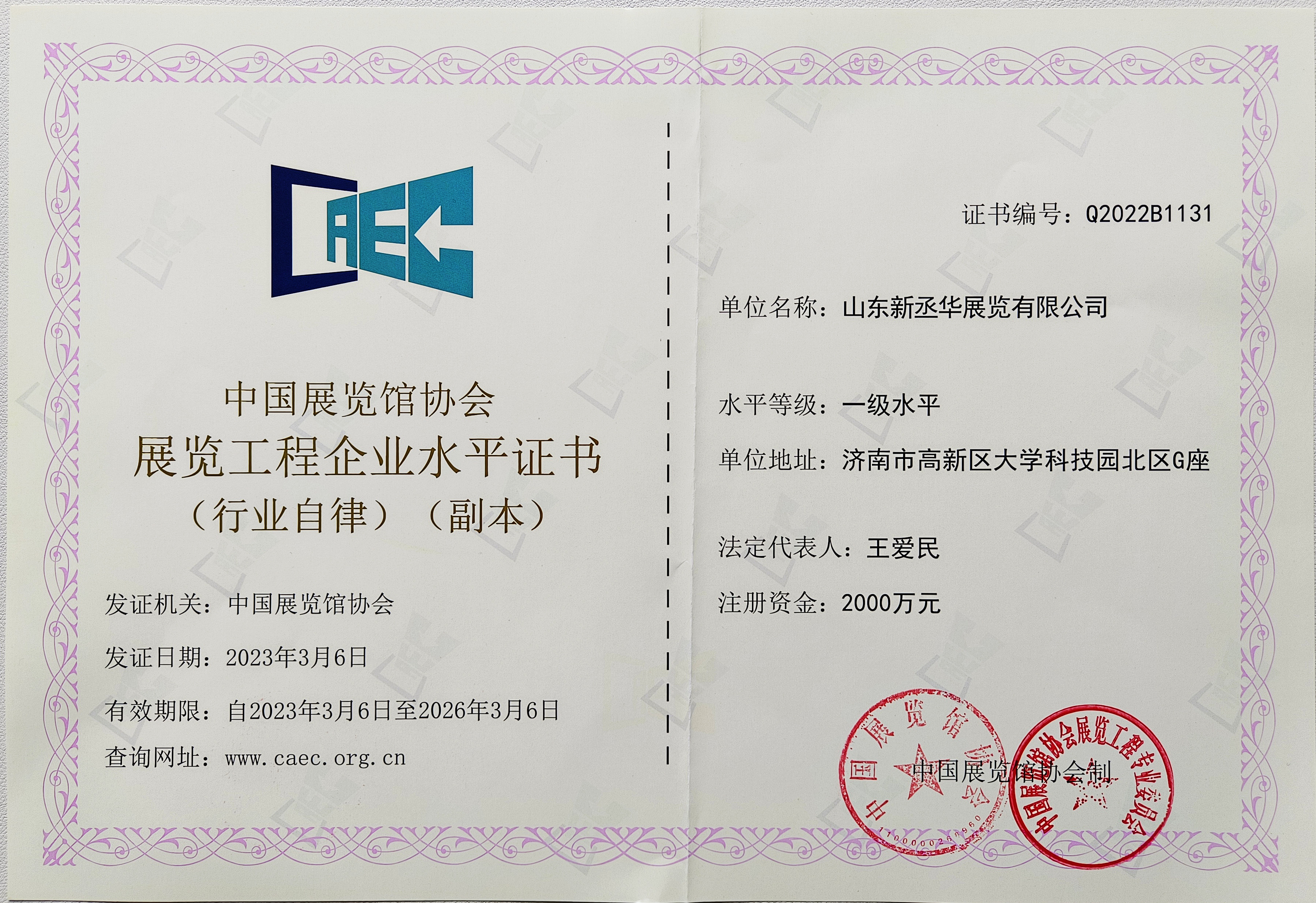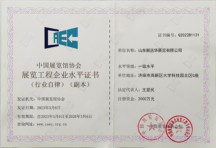 中國展覽館協(xié)會一級展覽工程企業(yè)