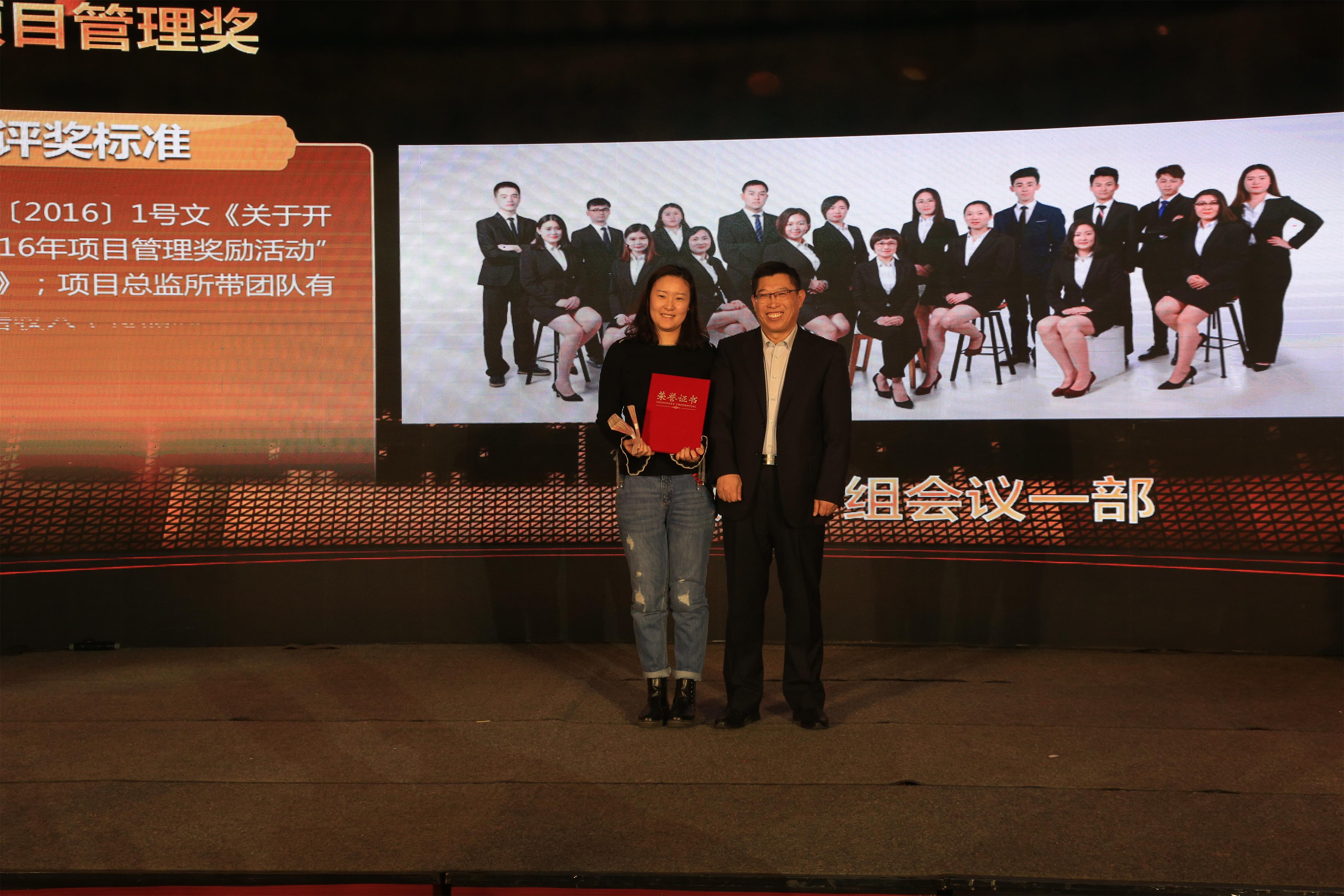 集團公司副總經(jīng)理韓照景為項目管理獎獲得者項目一組會議一部頒獎