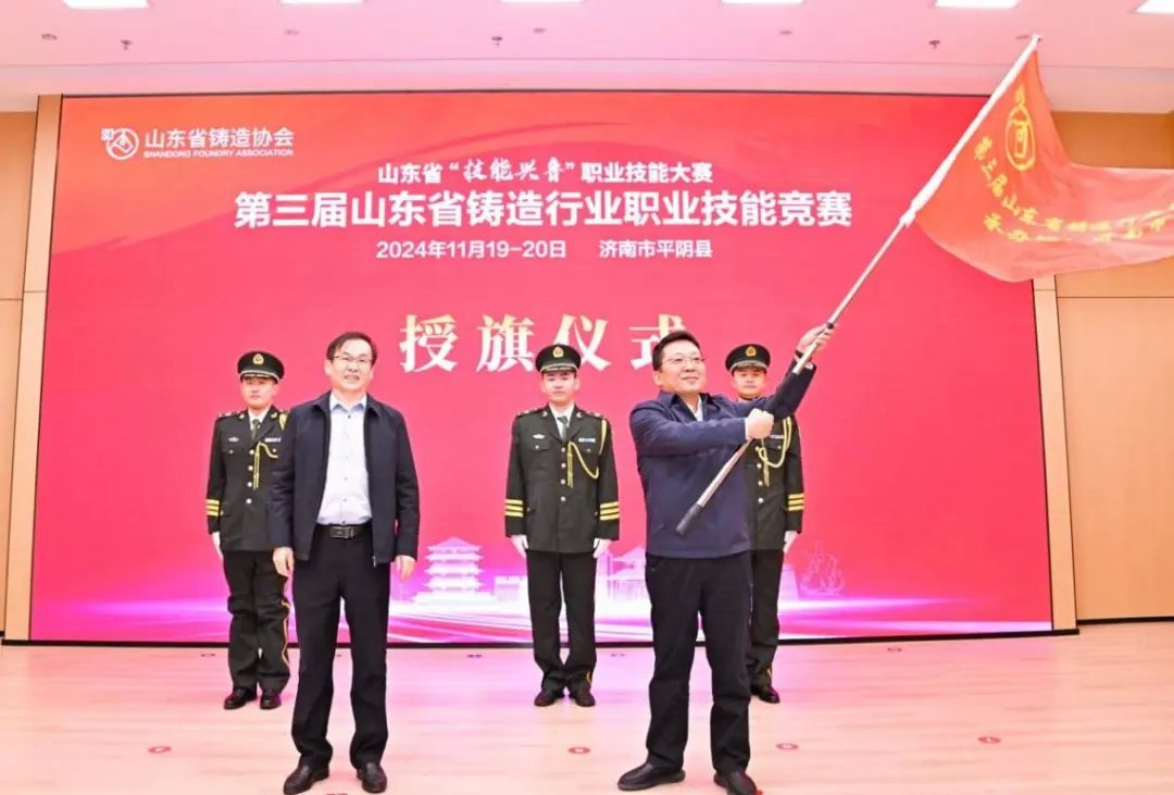 開幕式的一大亮點(diǎn)是競賽賽旗的交接儀式。由山東省國防機(jī)械電子工會(huì)主席吳興波代表本次競賽主辦單位將賽旗鄭重地交到本次競賽承辦方平陰縣人民政府副縣長丁新普代表手中,這象征著鑄造行業(yè)技能競賽的傳承與發(fā)展。賽旗的交接,不僅是一種儀式,更是一種責(zé)任的傳遞,激勵(lì)著每一屆的參與者為推動(dòng)行業(yè)進(jìn)步而努力奮斗。